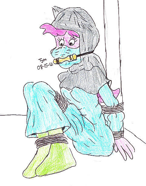 Here is Kitty Jo of the cartoon Cattanooga Cats. She has been captured and kidnapped in a burqa.