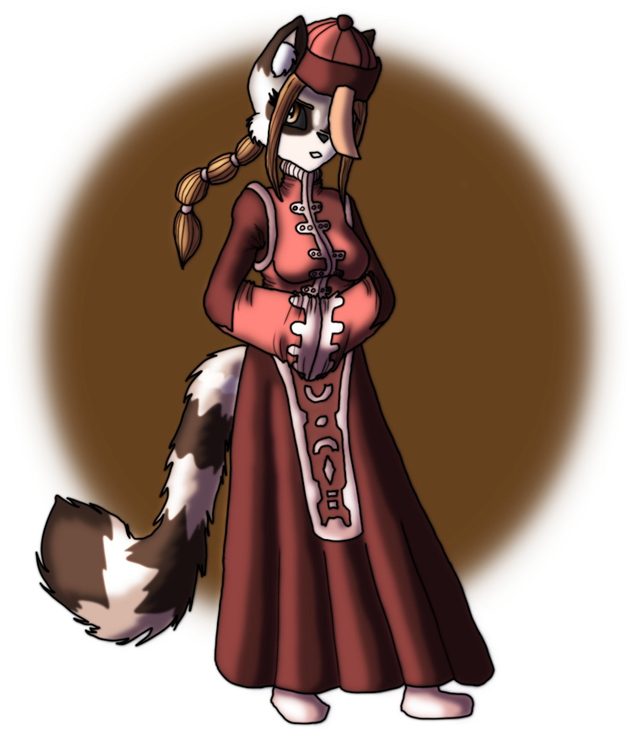 This gal has so little story....or does she? She's a Ghost/Undead Raccoon that haunts a little museum full of cursed and enchanted items. When Trisha was younger, this ghost, Minh Chi, would have her bring her various items that she would say are dangerous and need to be left in good hands, or at least kept out of bad ones. She's not really a main character in any story, but she does play a part in the same realm as all my other characters.