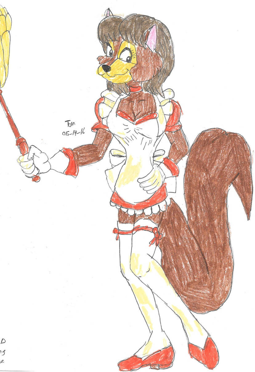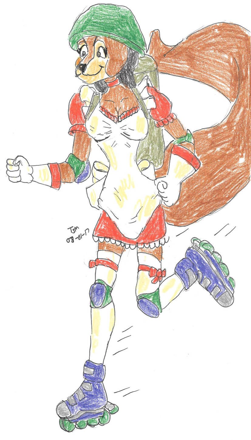 This is my new mongoose OC Tavi Kipling who is a maid for "Speed Maid Co." and she can be seen rushing around the town of New Portaferry on her online skates. She carries all of supplies in back pack. She skates around the streets of New Portaferry like a rocket.