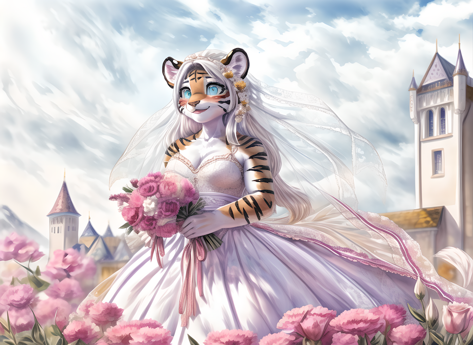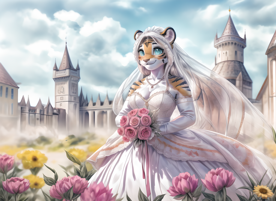 1girl, (warm smile, blush), lips, green eyes, shimmering eyes, bright eyes, , anthro, tiger, white hair, long hair, wavy hair, blue eyes, furry female, , collarbone, tiger tail, adult, medium breasts,