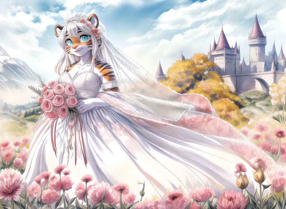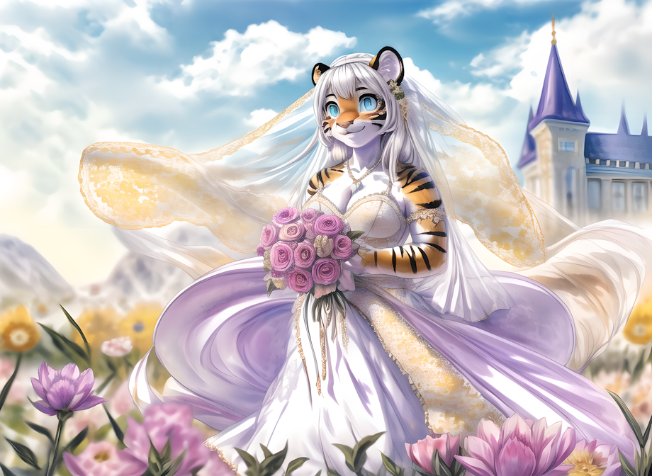 1girl, (warm smile, blush), lips, green eyes, shimmering eyes, bright eyes, , anthro, tiger, white hair, long hair, wavy hair, blue eyes, furry female, , collarbone, tiger tail, adult, medium breasts,