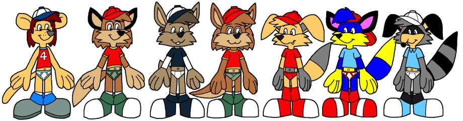 Alex, Spencer Starr, Spencer Lionheart, Brucie and Kipper, all in caps, shirts, shoes, socks, belly buttons, briefs, and Unzipped Pants Down