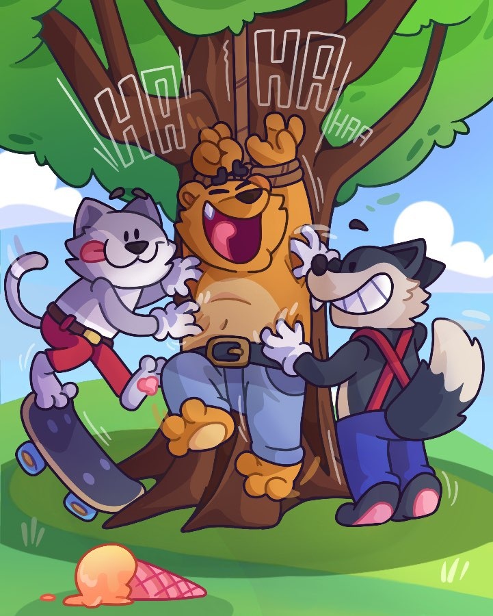 Looks like Cooper and Wally have decided to take advantage of poor Bruno's exposed torso. Looks like they'll be at it for a while, but don't worry, Bruno's having fun! (probably)