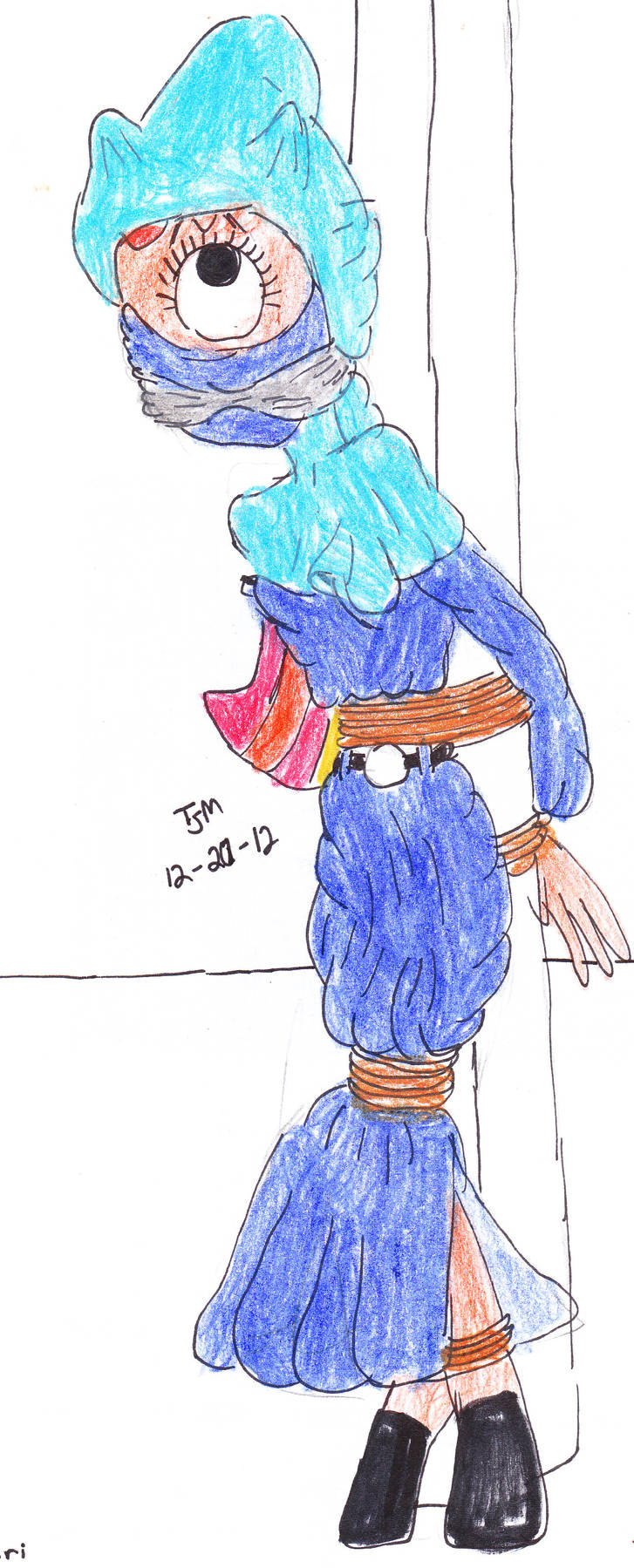 This is Saffi, one of the gal pals of the evil Helloise, of Disney XD's Jimmy Two-Shoes not having a good day. She has been captured and tied in a burqa.