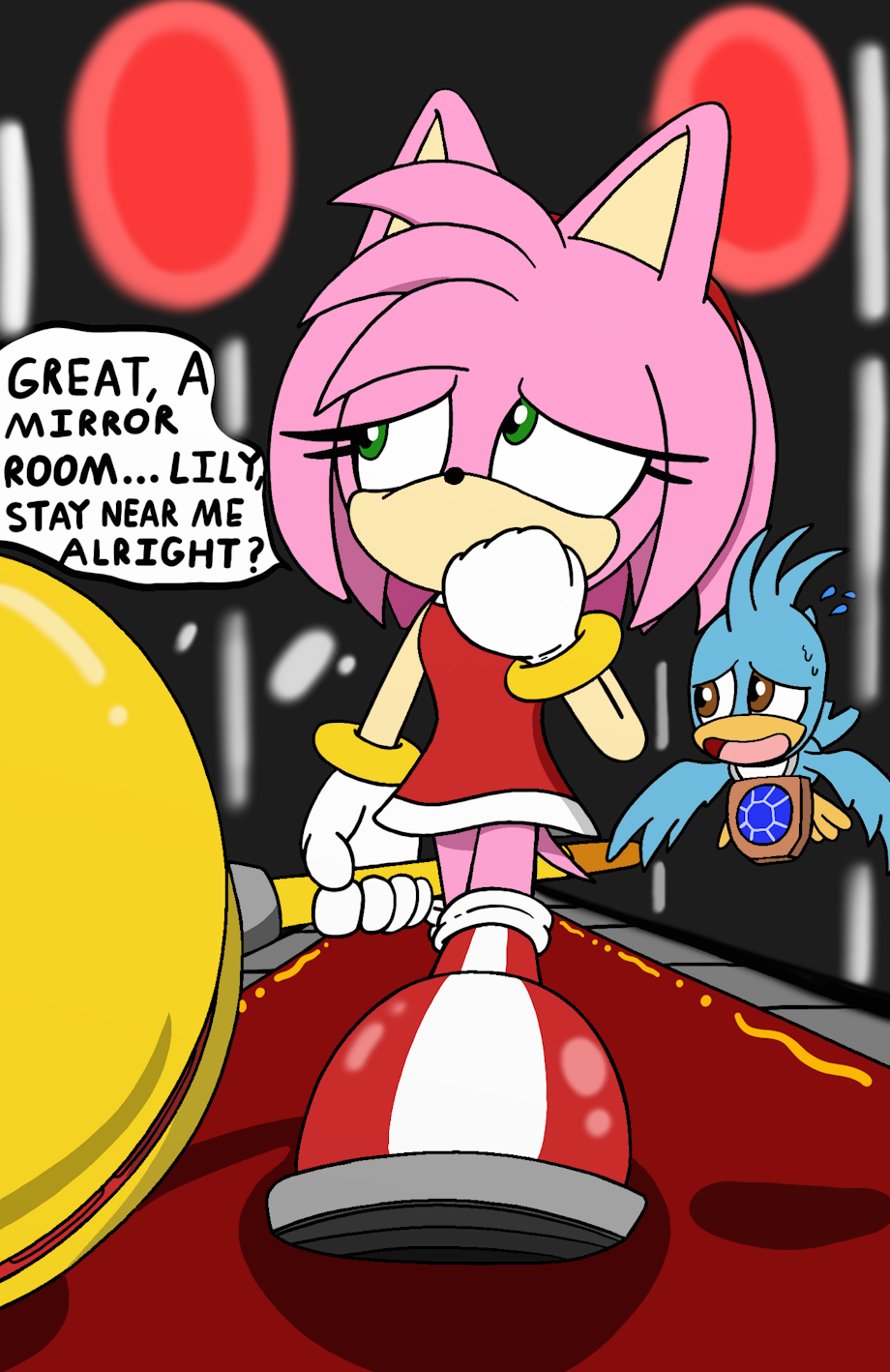 Running away from a stalker bot that's hellbent on capturing both Amy and Lily under Eggman's orders (Even though the robot is only after the chaos emerald the bird has), Amy still stubbornly finds time to date Sonic and bring him into Twinkle Park, despite that a literal stalker bot chasing her everywhere.