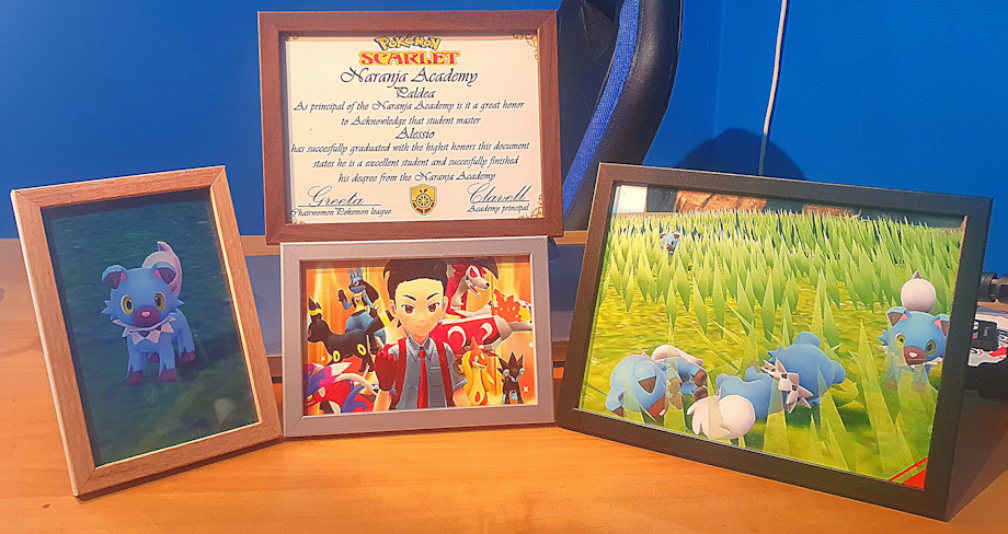 hey guys!!! so sunday night i finished pokemon scarlet :( and as a reminder to this amazing game i made my self a graduation diploma from the naranja academy but besides that i also was able to catch 5 shiny rockruffs! and i printed out everything and framed them as a reminder to this amazing game :) so i have to behonest pokemon scarlet was one of my best games besides the shiny rockruffs the game was compleet open world you could do what ever you want stand were ever you want if you needed a battle item you could buy it from the stores if you walked by a trainer your not forced to battle them you didnt even needed to do the gym's to catch high level pokemon that is what i loved the most abouth this game no limitations but sadly enough like every game its end came and its time i need to move on :) https://www.youtube.com/watch?v=yU0tnrEk8H4