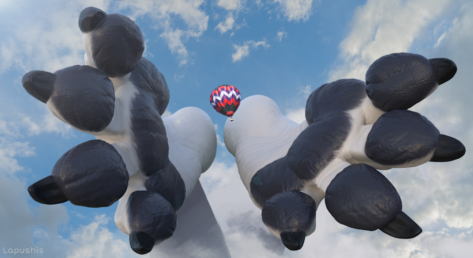 A little bit of a good ol' teasing in both sences of the word)) Loona does a little stretching, looming over a tiny air balloon with her titan paws))