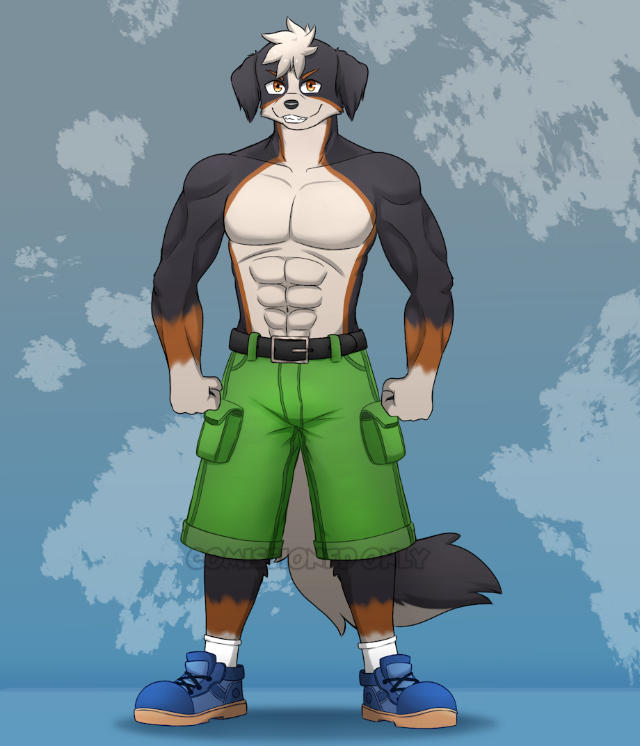 As we know in the original series, Rex has disability pup, which is his legs unable to walk. So, he used high-tech wheelchair to help him whenever he goes. But in AU (anthro) version, he doesn't need a wheelchair anymore, as he has successfully full recovered by a great specialist treatment and more therapies. Now, he's often to do some physical exercise every morning, to stabilize his body and legs.