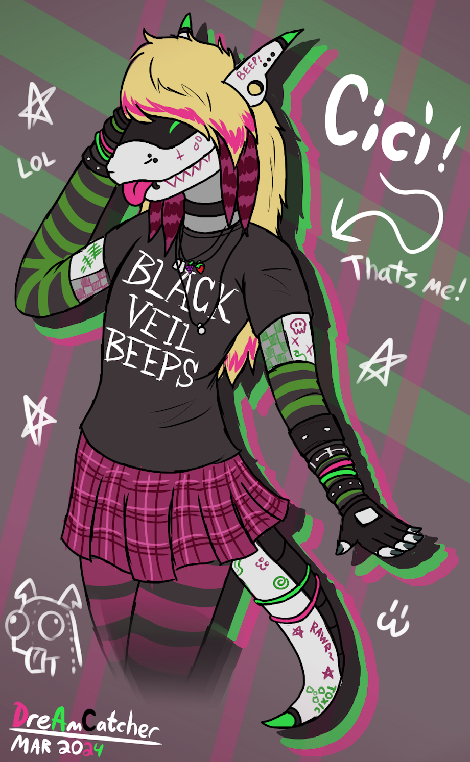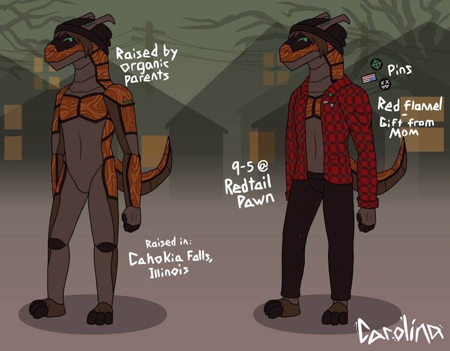 I set out to design a synth that would fit a modern-day setting, and I settled on Carolina, a grungy emo design. They live in the American midwest, just outside of Chicago