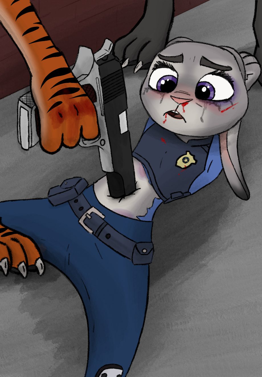 Hey! You're messing up her fur over here too. Stop it! At least shoot her in the heed. Leave her fl
