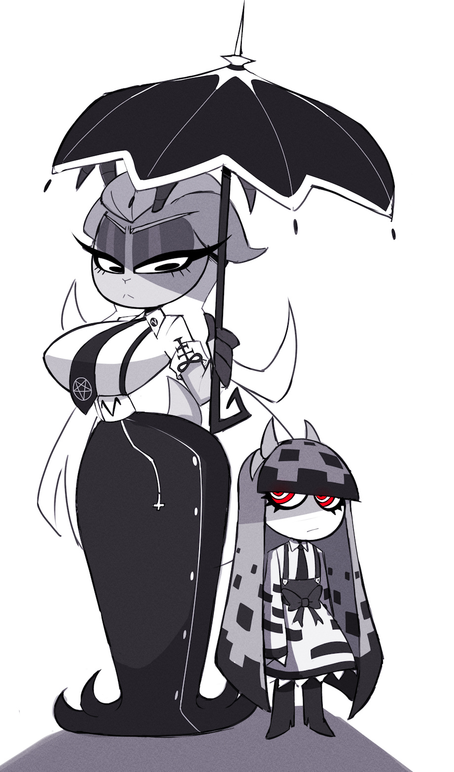 The tall goat's got a very classical gothy feel to her, while the patterning on the little girl's ha