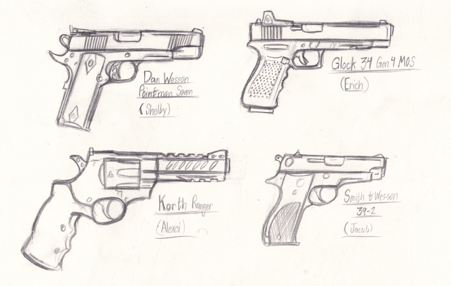 Quick look at some of the siderarms/sidearm ideas for a few of the characters from the mercenary group.