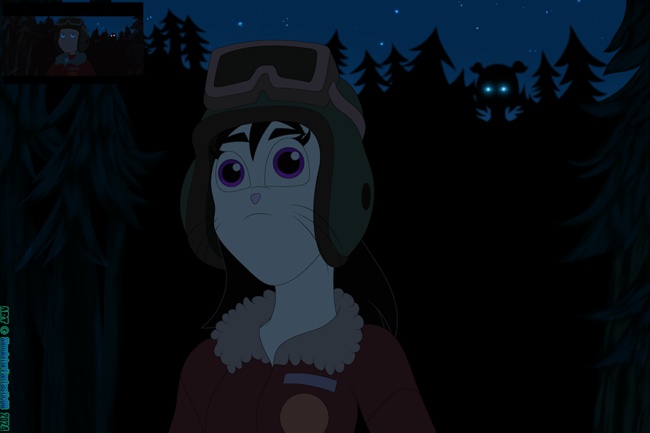 Erika meets an unexpected friend in the woods one night. Herea fun fact: I was a SUCKER for this movie ever since I was maybe 2 or 3. This film also came out the year I was BORN. Which explains why this film was REALLY meant for me. As a fan/lover of the film. I have decided to use 2 of my characters in this little parody art of mine's as having Erika as Hogarth, and Farah as the giant robot.