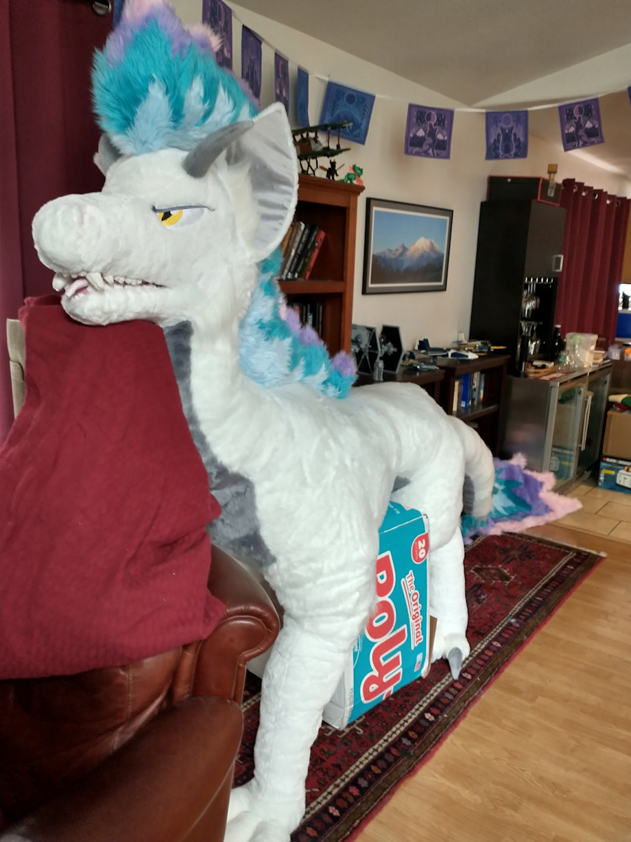 Another view of the 14 foot long dragon, showing her head-on, and showing off her teefies. :D Very proud of the plush jawset on her!