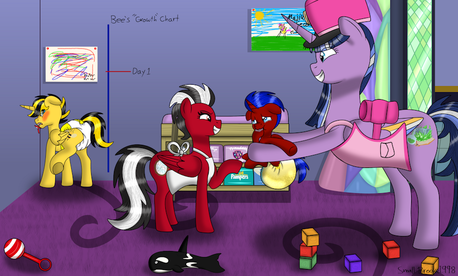 And this takes place inside the Castle Of Friendship. In my lore, this castle becomes a homebase. Bumblebee inherited it. My AU takes place at least 200 years into the future so that means, the characters we loved so much, are long dead, except for Princess Twilight and Spike. And yes, Princess Twilight has the extended lifespan curse (that alicorns have), so she's physically young.