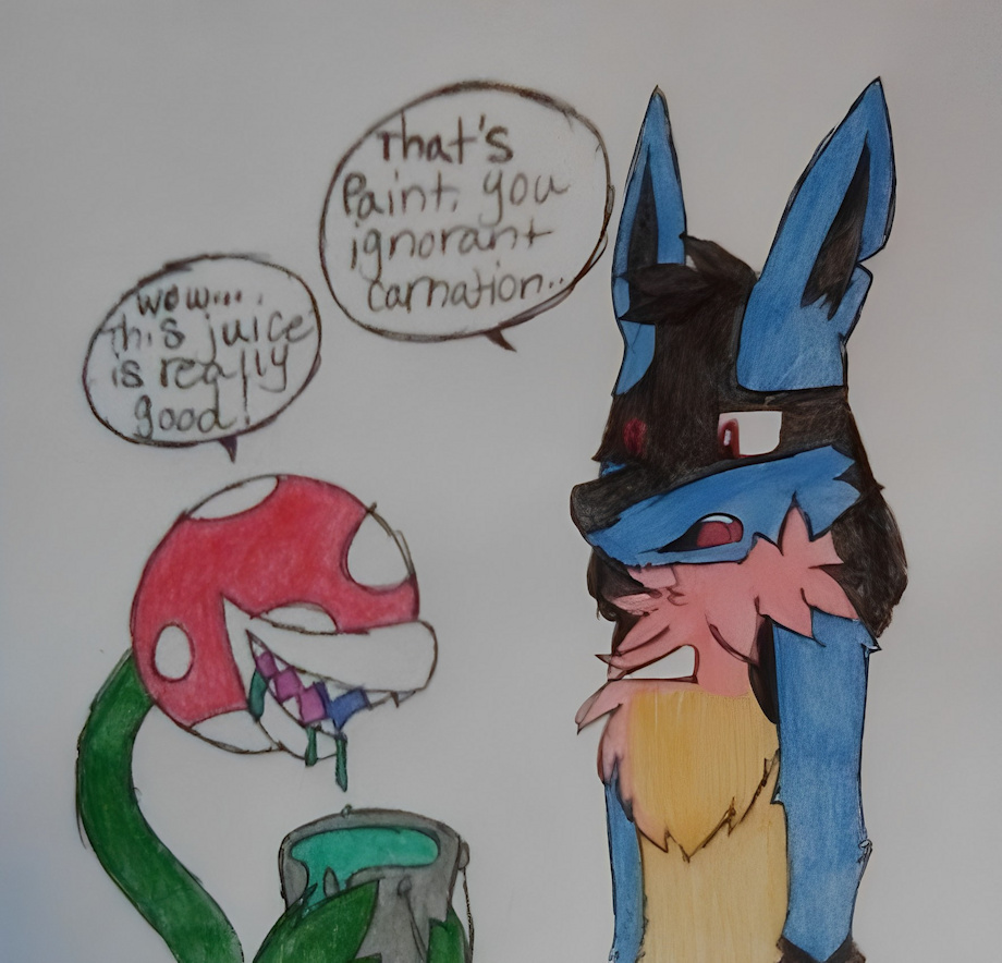As his mind is clouded up with rage and the nostrils of his round nose flare, he tightly grasps the bottom of Master Core’s tank top and, with so much pent up aggression and strength, raises a fist into the air ready to strike. Despite his gumption, Banjo hesitates, the bear now getting a grasp of his actions and even his surroundings. Master Core, on the other hand, taunts and mocks him for holding back, unaware that he is one punch away from being broken and launched into the air. This would be considered very out of character for the jolly bear to do, especially to someone who is irredeemable and beyond recovery, but for this myriad piece of shit, Banjo will make an exception.