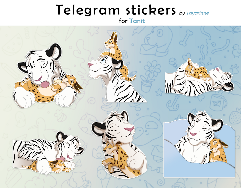 Telegram stickers commissioned by ✨Tanit. Thank you so much for commissioning me! 💛