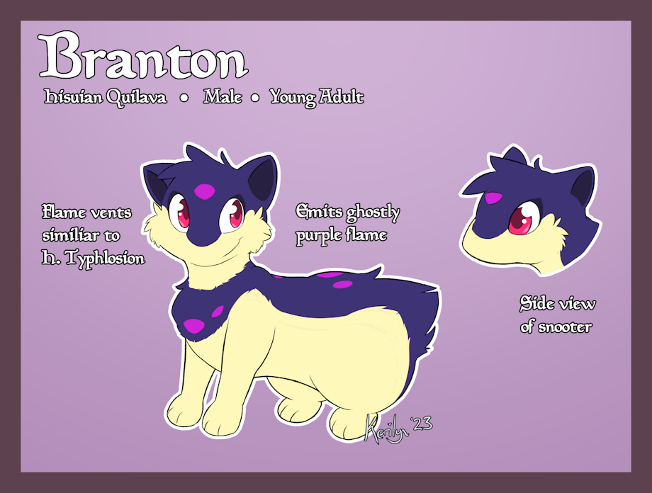 Just a draft of a Hisuian Quilava character I designed named Branton! I've been meaning to draw more of him but sadly, this is all that exists for now! Maybe someday.