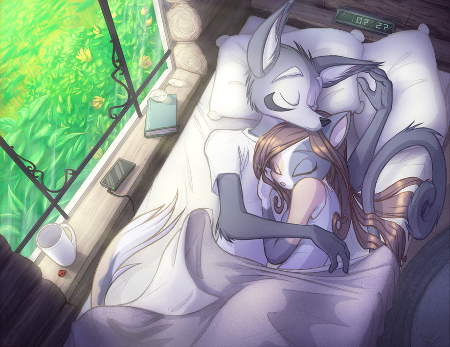 Lovely picture, I adore how warm and happy it is. Reminds me of a couple of my characters, actually, but then cuddling is popular with basically everyone. n_n