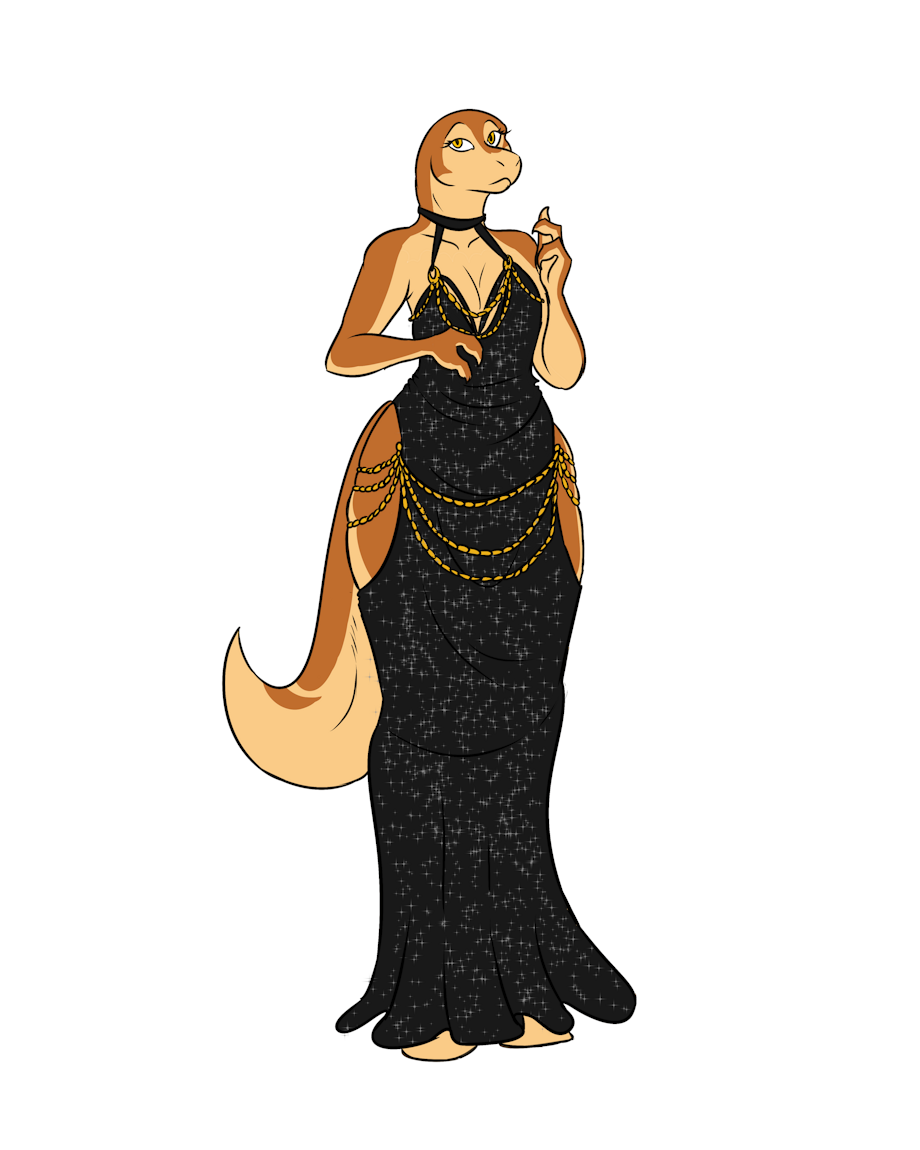 There was a really, really gorgeous dress going around Twitter, and someone suggested I draw dinomom in it!!