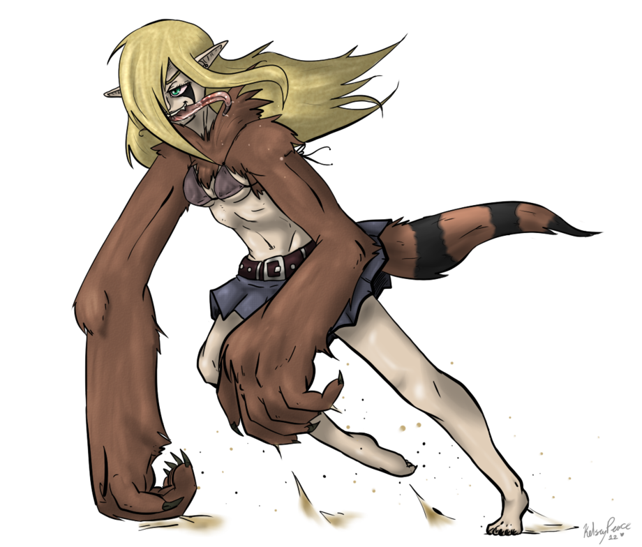 Her tail reminds me of a raccoon.. I like it. I remember when this character concept was born. :D