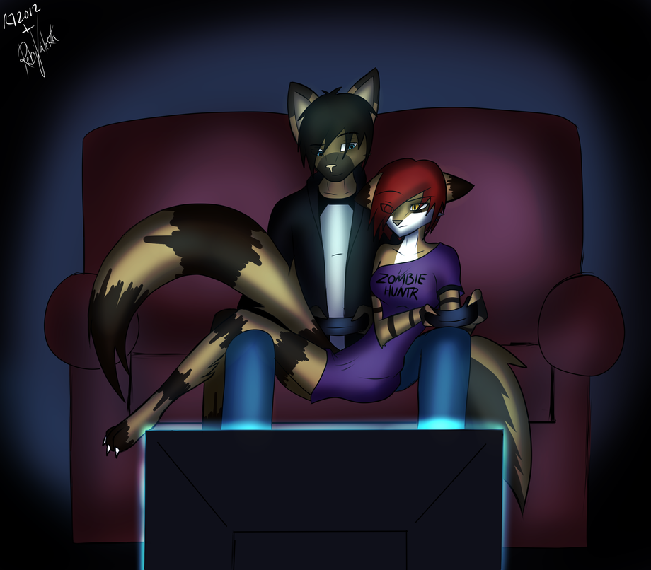 Collab between me and RebiValeska on DeviantArt of our fursonas playing games