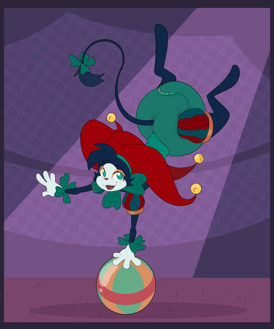 This is Klove, a pretty lucky cat, he wanted to pop by and say hi to you all today. Always ready to entertain all with various jestery tricks. Cuddlehooves helped with this trick of his balancing on the ball he's showcasing for you all right now. Klove is said to be a controller of Luck, so it you get on his good side maybe you'll find yourself having a lucky day.