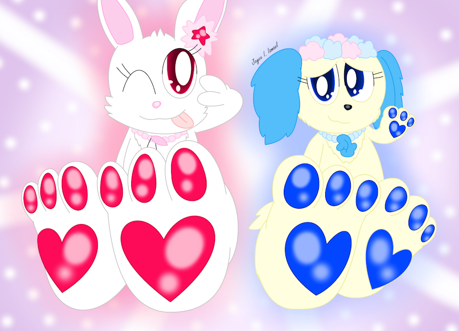 Just felt like drawing Ruby and Sapphie from Jewelpet again, this time showing off their pretty-looking paws. Even their beans reflect the jewels they're themed after!
