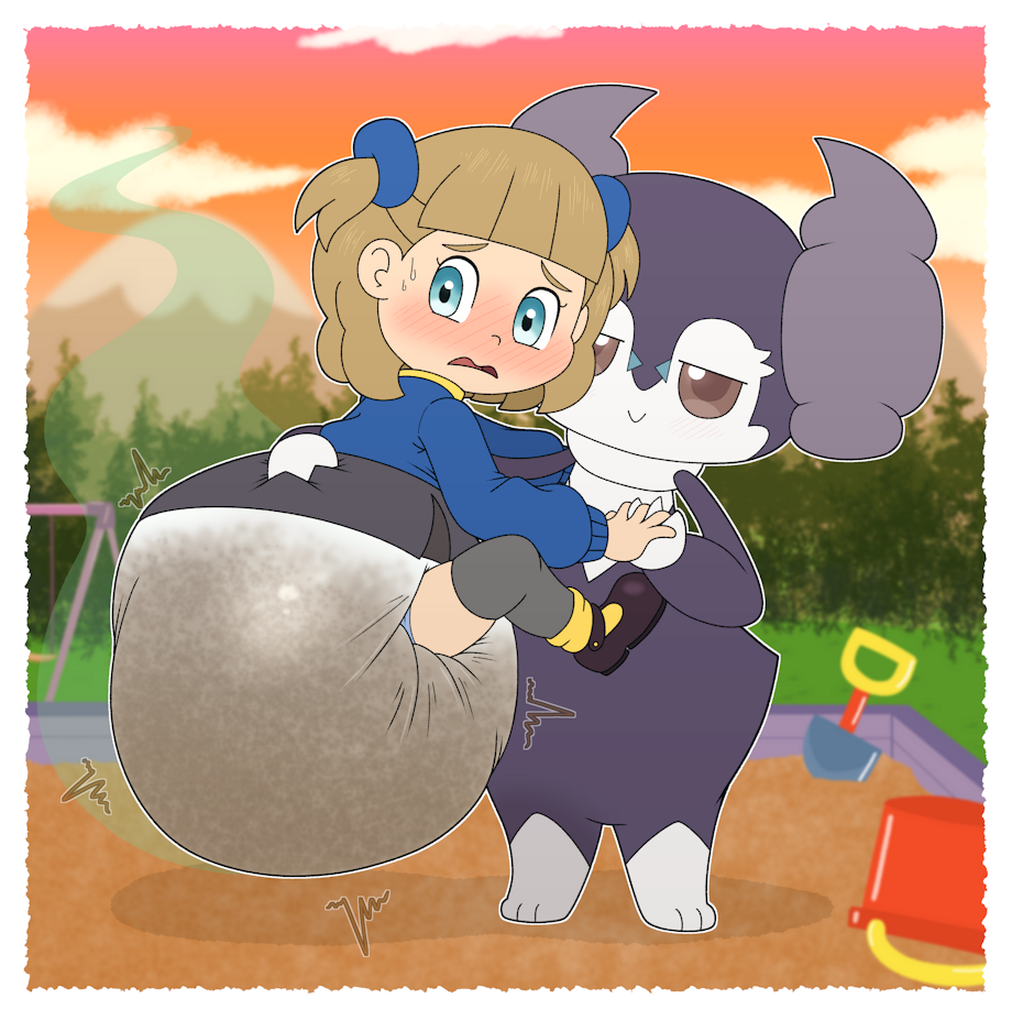 Long play days outside, means big boom-booms thats okay. We change her at the pokemon center. Nurse
