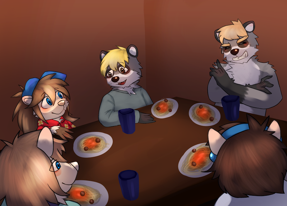 This image depicts a scene in one of the chapters of my "Bobby Thornbody Christmas Carol" audio story on Fur Affinity. Check it out bobbythornbody . It was drawn for me by meijimeowth , who also has the image on Fur Affinity here.