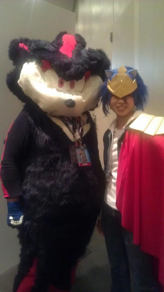 me dressed at shadow the hedgehog and a fellow sonic fan dressed as king sonic