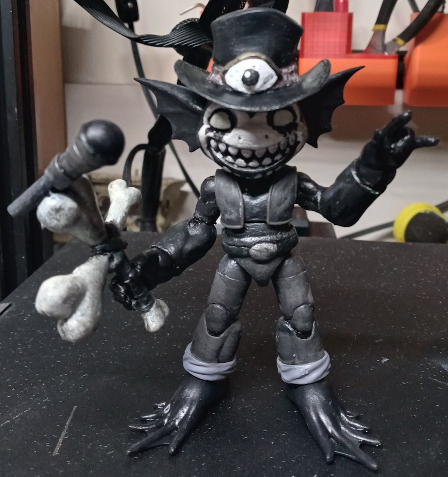 Obsidian started his own self titled band, making concept albums telling stories of the macabre through song. Eventually he retired in a fancy well-off suburb of Dallas, TX with his human wife, the locals just seeing him as a funny little guy who doesn't go out in public out of costume and never breaks character.