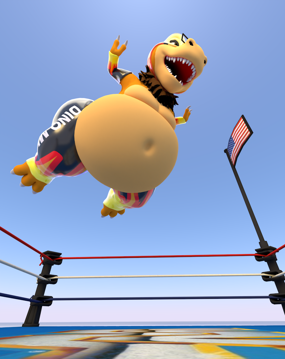 Wait a minute, what's This?!?! NO! NO DON'T DO THIS! OH MY GOD FROM THE TOP ROPE! JURASSIC BELLY BOMB! IT'S OVER! IT'S ALL OVER!