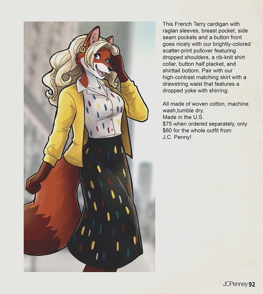 Did you know that I got to appear in the 1986 JC Penny catalog, sporting this affordable and fashionable number? Well, thanks to J. L. Brie's beautiful illustrations, I did!