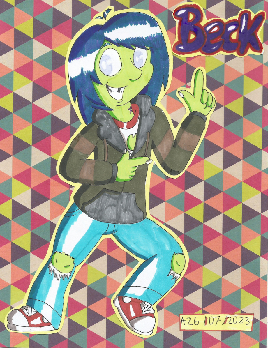 Rediseño con un estilo mas infantil del oc de LOGOS4THEWIN (sugerido Twitter) Beck es un chico zombie muy sipatico y se ve muy lleno de "vida". A la artista (adulta) le gusta republicar mucho arte nsfw en Twitter. Ya le prometi que le haria arte NSFW de Beck y espero que acerlo pronto (su oc tienen 18 asi que no hay problema) Sin naa mas que ecir. Saludos y sigan dibujando. Ya queda poco para terminar mi maraton de arte antiguo.
