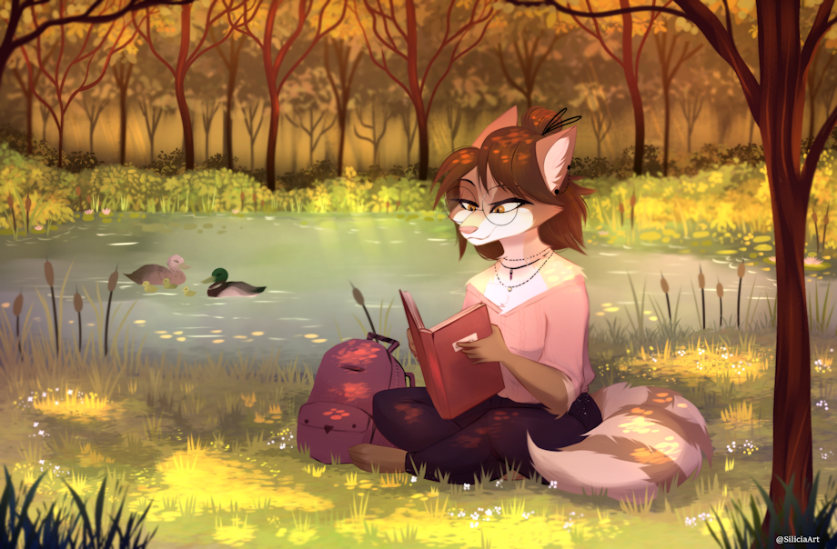 A moment of peace as Victoria cranks out a few chapters from a book. Ducks and their ducklings loiter in the pond nearby. A pleasant distraction from the rather dry paragraphs at hand. Sun breaking through the tree's making for natures best reading lamp.