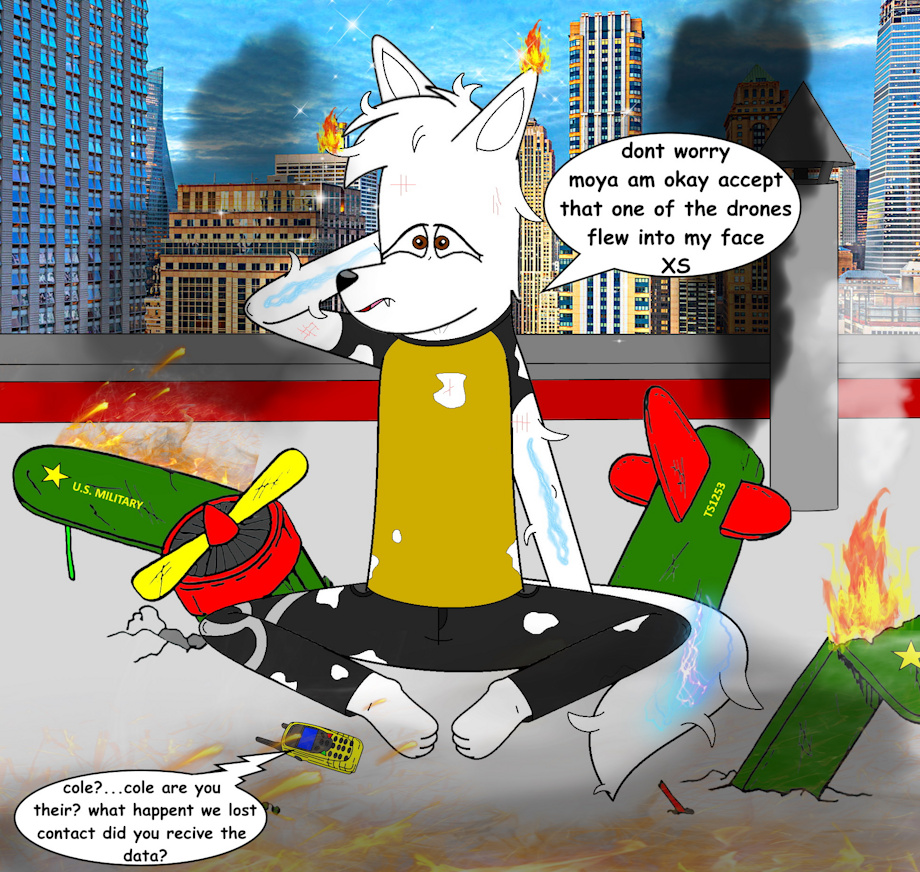 hey guys!!! so i was playing infamous and a drone crashed into my face :3 am not kidding if i knew how to record or make a screen shot on the ps3 i would have done it.......if that is possible ',:3??? okay so what happen exactly i still cant believe it myself it was really pure dumb videogame bad luck ',:D??? so cole his mission was very easy all he had to do was shoot down 4 drones and grab the data okay easy enough??? so cole climbed on top of a building and shooted down the first drone and toke the data piece of cake but then he climbed on top of a other building right on top of a watertower when he shooted down the second drone it first circled the building and i swear this really happent the drone flew and crashed right into cole his face i couldnt believe it myself its like that time when i played farcry 6 and dani slipped off from the hill and died with his legs right between a pipe XS