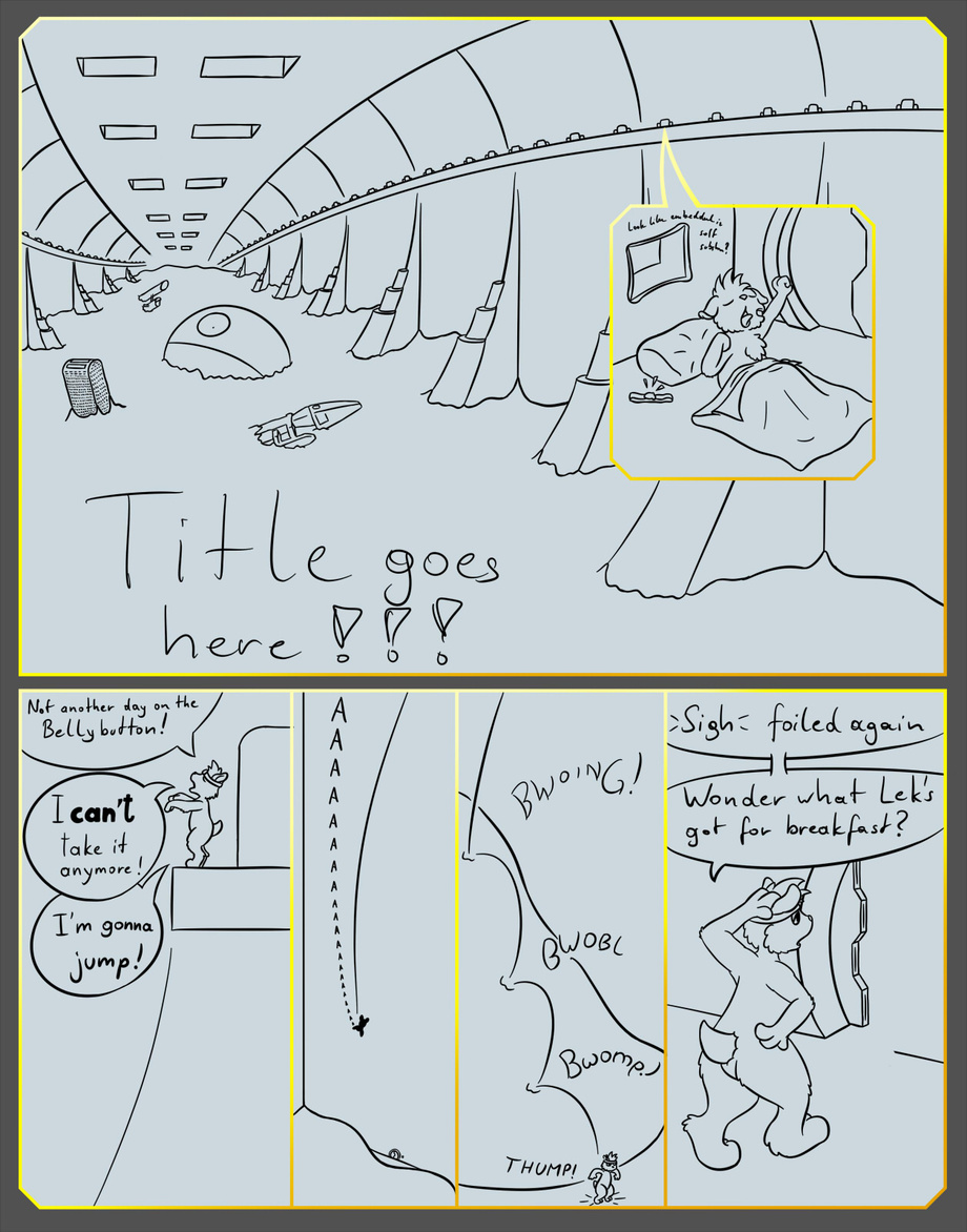Over 3 years have passed since I drew the original first page of Critters in Space. I draw a bit different now (mostly digital) and thus decided to start from scratch.