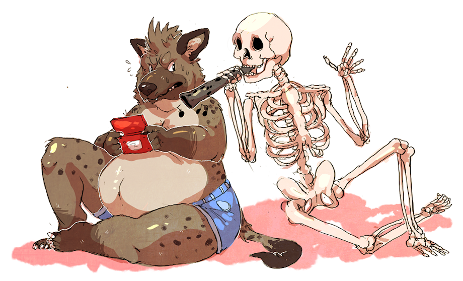 Well, a fat fellow and a rather maximally thin one, rudely interrupting my grinding in whatever RPG I'm playing to enact a modern-day Danse Macabre. If he doesn't watch it he'll get a demonstration of what hyenas like to do to bones.