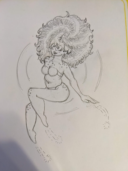 Though definitely going to work on the afro a bit. That's suppose to be a spinning galaxy in her hair. I'm hoping if I color this, it'll be easier to convey that.