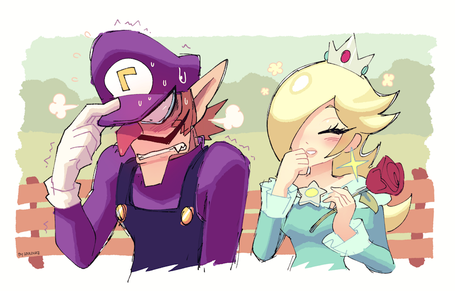 Quick drawing of Waluigi giving a rose to Rosalina 🥰