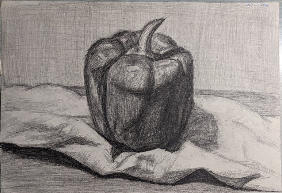 Pepper on a cloth 布巾の上のパプリカ 抹布上的柿子椒 2023-3-23 done by ReiTenny