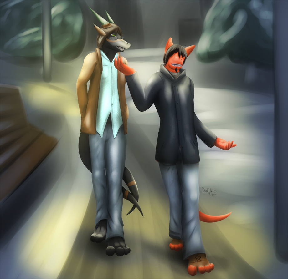 Hehe. Just a little thing I did today, I wanted to draw Diax and Danji mentioned them walking around in winter and since Diax is an android the cold doesn't bother him, thus him wearing just a dress shirt. ^^ I like how this turned out.