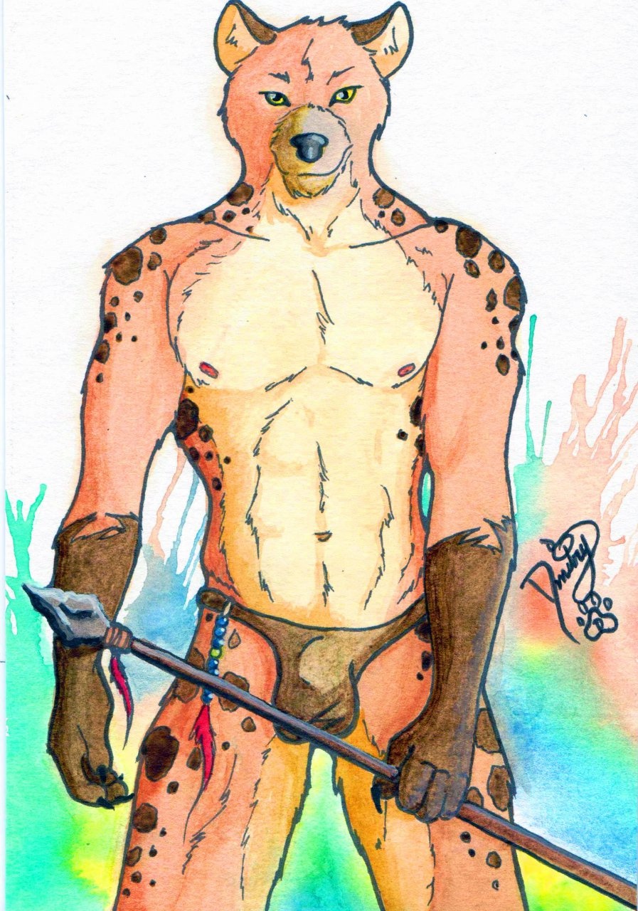 A suitably strapping gnoll with spear polished and sharpened, ready to pounce upon the unsuspecting.