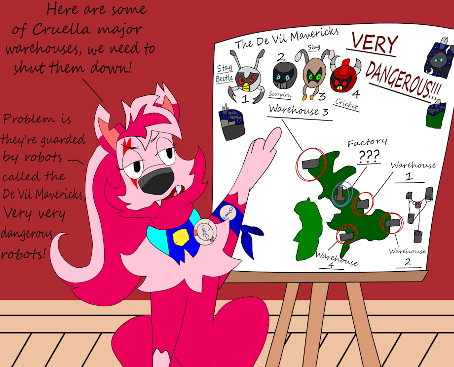 Here's Angel Wolf giving a briefing on the De Vil Mavericks and infiltrating Cruella's warehouses in full digital color! I've been wanting to do this for a while. Now it's a reality! Don't worry, I got permission to do this before starting. Hope you like it ^^