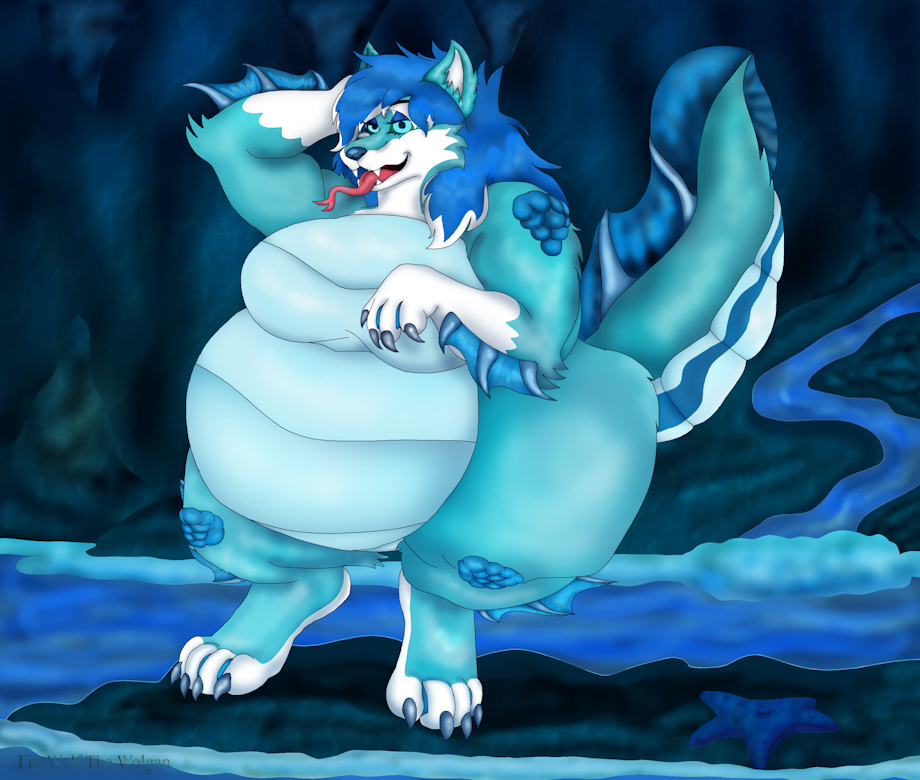 Here is a new version of my OC, Marina, in her own grotto, with an eye glowing effect and scales added to her torso.