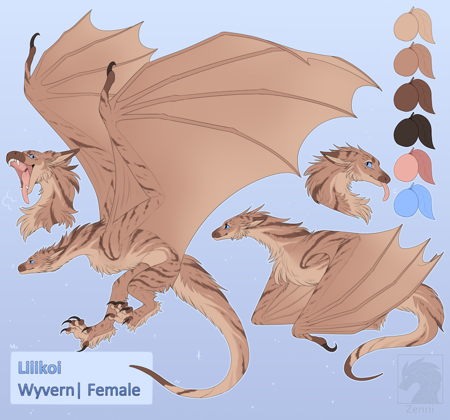 Ref for my floofy wyvern! I still have yet to draw her in any pieces as I don't have a ton of time for personal art but we'll get there!