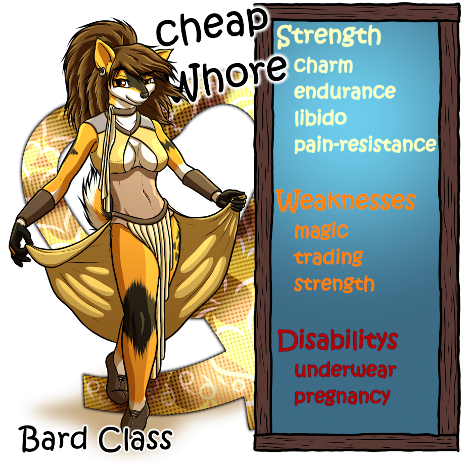 Welcome to an Charsheet about the "cheap Whore" in my comic The quest for quests.