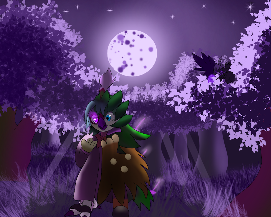 They better should have listened not to go on fullmoon into the forest, the moon illuminating in a strange purple colour. A terrifying hOWLing was notited to late as now the strange magic pulsing through his body changing body shape and purpose. Guess they join the forest longer than expected :3