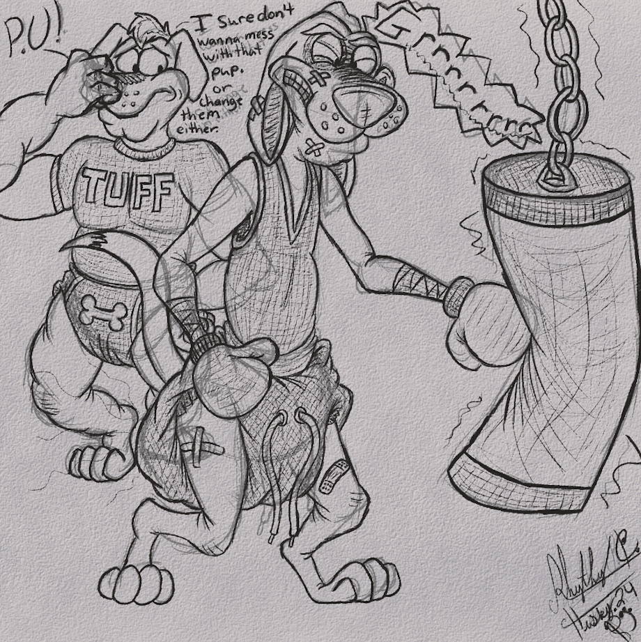 Whoa that pup is really rage out on that punching bag and I mean alot of rage and the dog behind him can sure smell it.